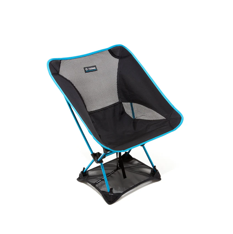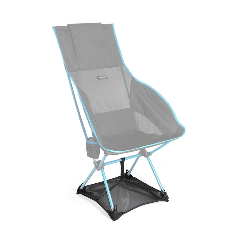- Secure attachment. Centre strap and durable corners securely attach the ground sheet to the legs of your Helinox chair. Grab loops assist in securing chair feet.
